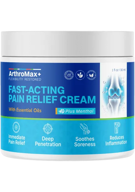 ArthroMax Plus is an advanced, fast-absorbing, all-natural pain relief cream designed to ease sore joints and muscles and restore optimal functioning. Through a unique triple-action blend, the powerful formula of science-backed extracts works together to help soothe pain and stiffness, reduce inflammation, and restore optimal flexibility and mobility.